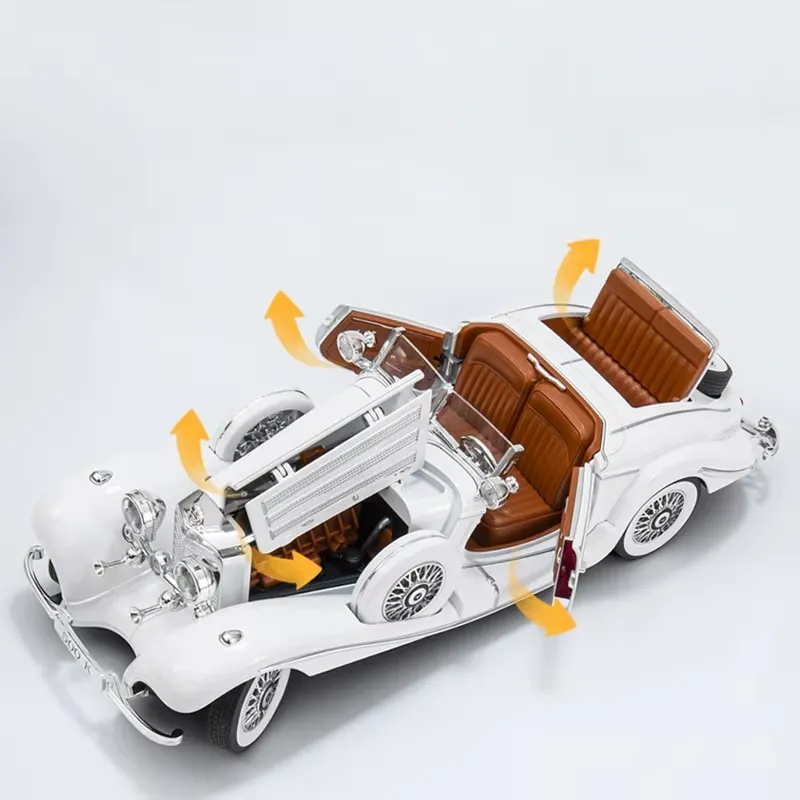 Experience timeless elegance with the 1:18 Benz 500K Diecast Model — featuring sound, lights, and exquisite detailing for collectors and kids alike.