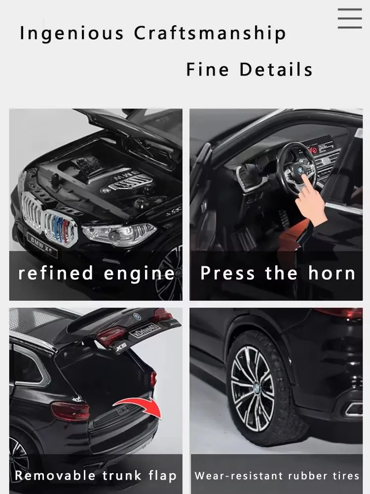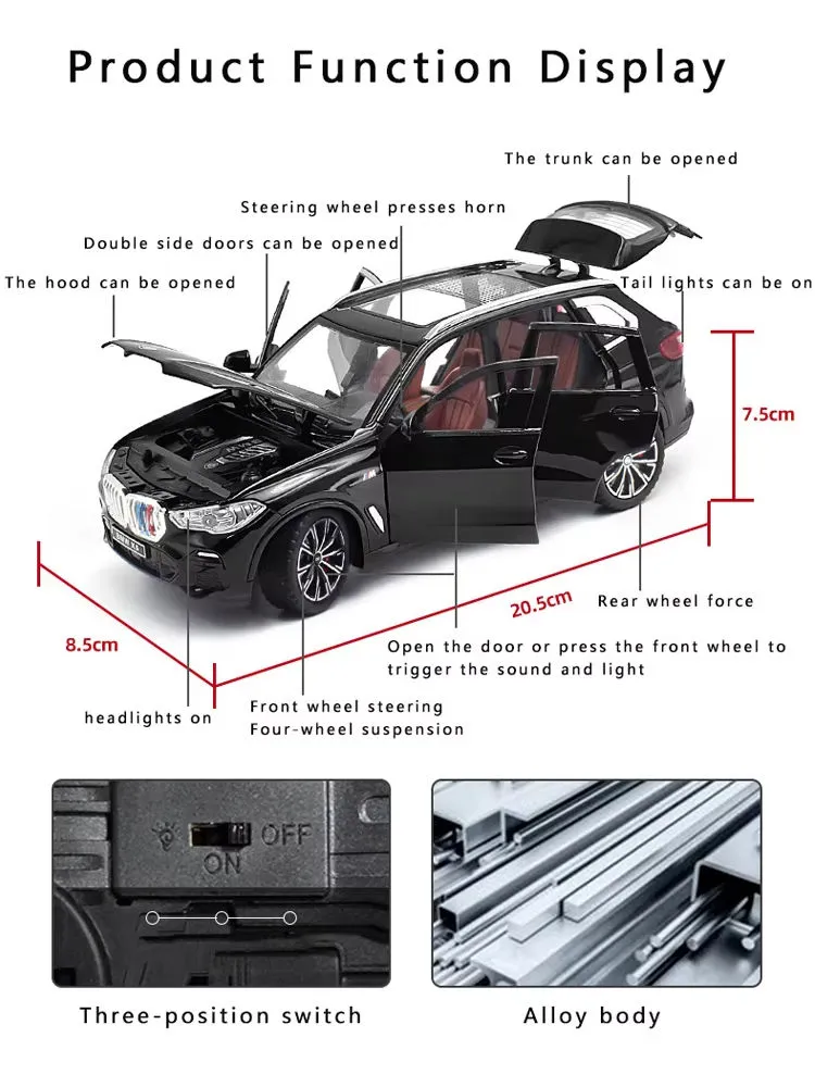 Realistic 1:24 scale design inspired by the X5 SUV.