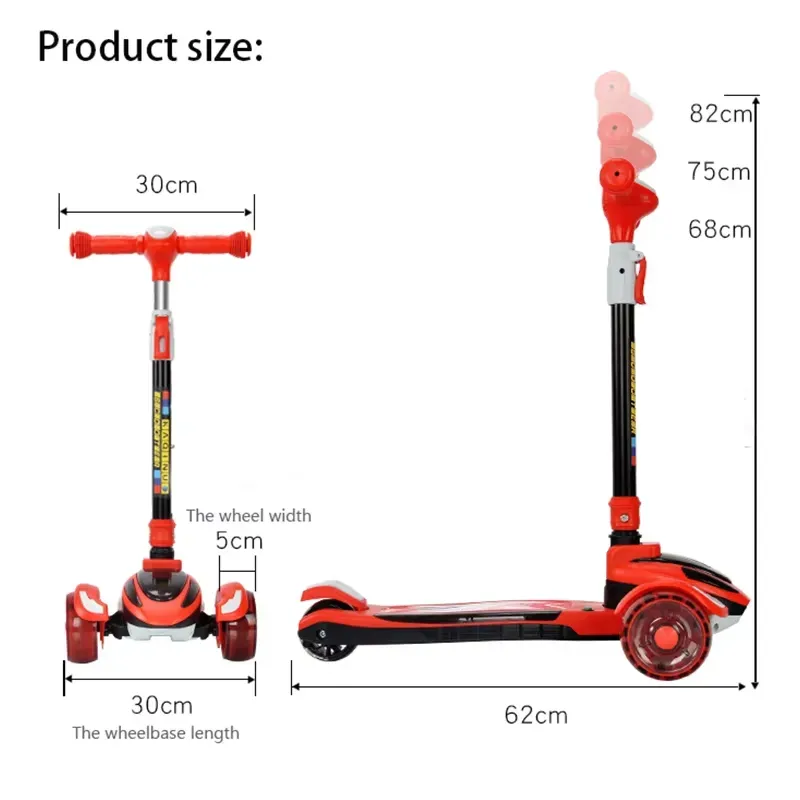 3-Wheel Kick Scooter for Kids – Folding with LED Wheels & Adjustable Height