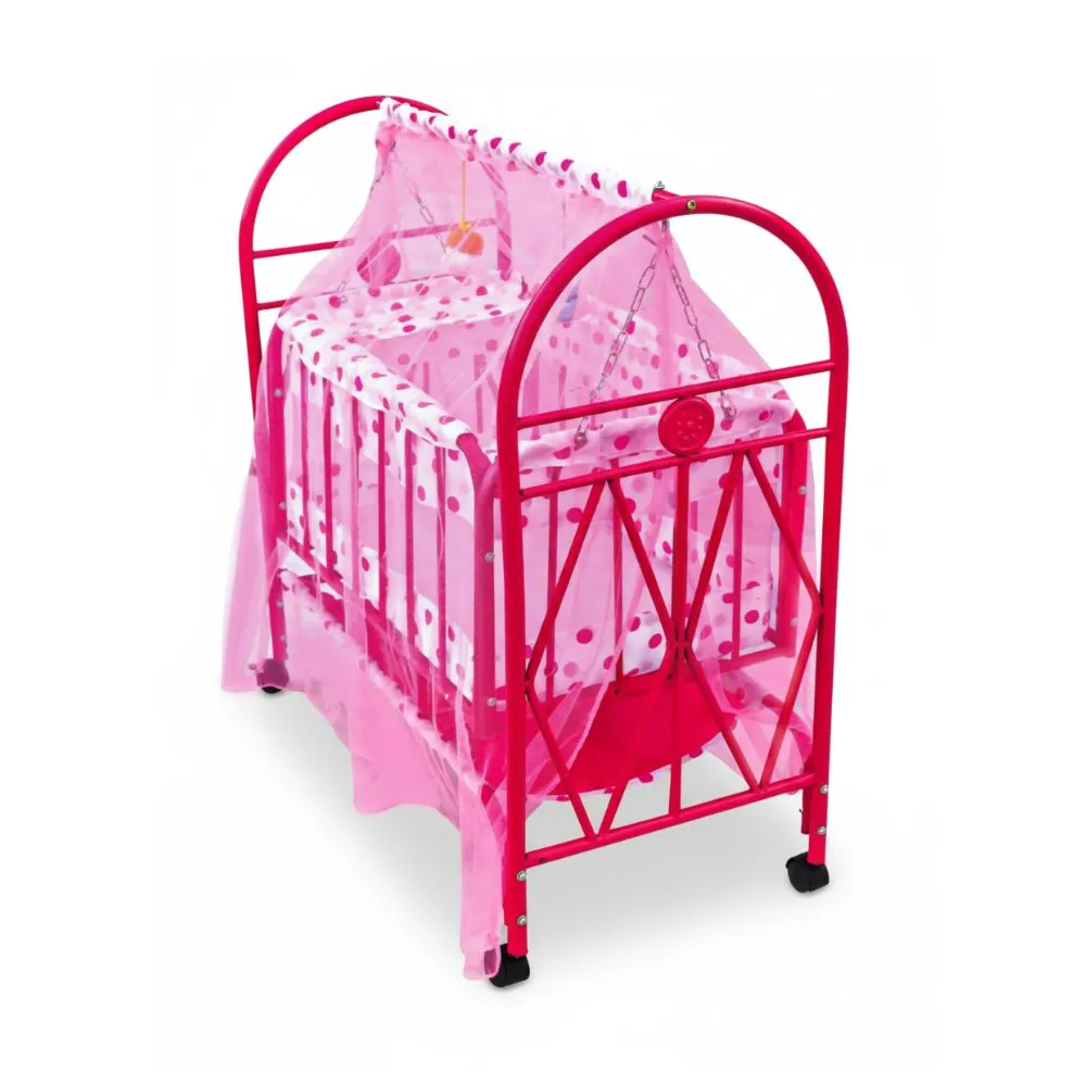 With its 24x30 inch spacious sleeping space, the cradle is structured with pipes on all sides, additional base pipes, and a hardboard inside for strong support. Available in two attractive colors—Pink and Blue, the BABY DOLNA 125 is not only practical but also stylish for modern homes.