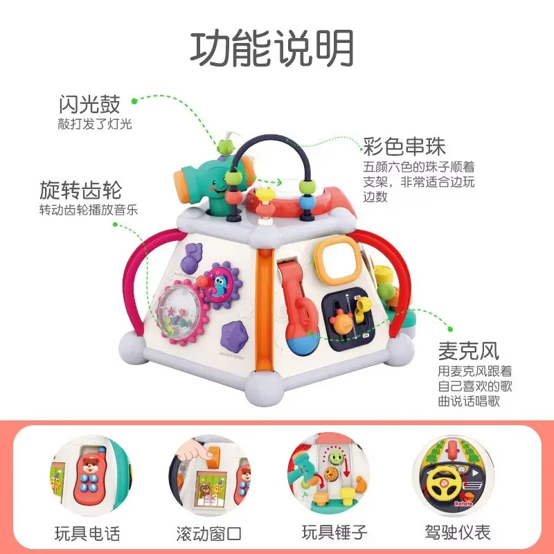 Baby Multifunctional Learning Activity Cube হল একটি ইন্টারঅ্যাকটিভ প্লে টয়, যা শিশুদের মিউজিক, লাইট, আকৃতি, রং ও শব্দ চিনতে সাহায্য করে। এই এডুকেশনাল টয় শিশুদের কৌতূহল জাগিয়ে তোলে এবং খেলতে খেলতে তাদের মোটর স্কিল, হ্যান্ড-আই কো-অর্ডিনেশন এবং ব্রেইন ডেভেলপমেন্ট বৃদ্ধি করে।