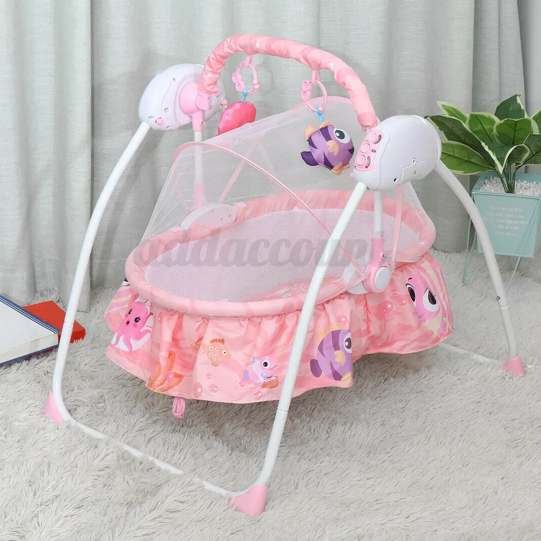 ✔[Safe and advanced design],This automatic swing cradle is designed keeping the safety of the baby in mind. It also has a mosquito net as covering to ensure a safe and comfortable sleep.