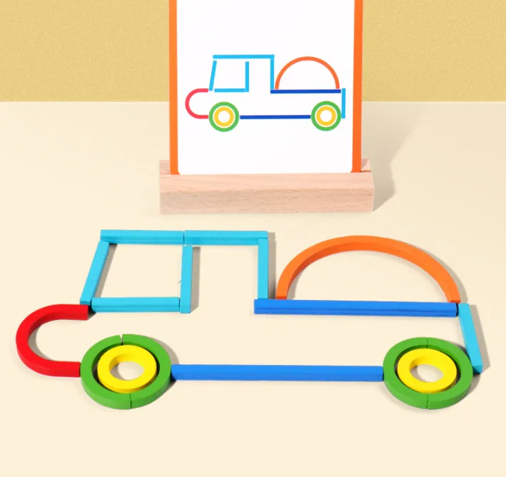 Wooden building toys will help the kid learn colors, and develop observation, memory skills, imagination, fantasy, and logic. Play with kids and let them enjoy blocks toys with sticks and rings, improving kids’ practical ability, creativity, hand-eye coordination, and fine motor skills.120 Pcs stick & Ring.20 Pcs Card.1 Wooden card holder.
