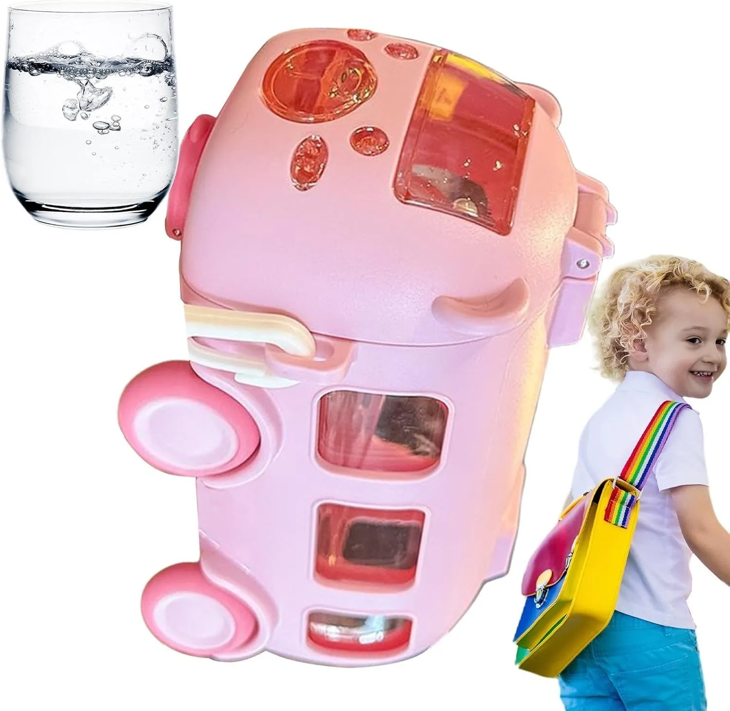 Featuring a leak-proof design and a convenient shoulder strap, kids can carry it comfortably without spills. Its bus-themed design appeals to young boys and girls, adding a playful touch to their daily routine. Crafted from durable materials, this bottle ensures long-lasting use while being easy to clean and safe for children.