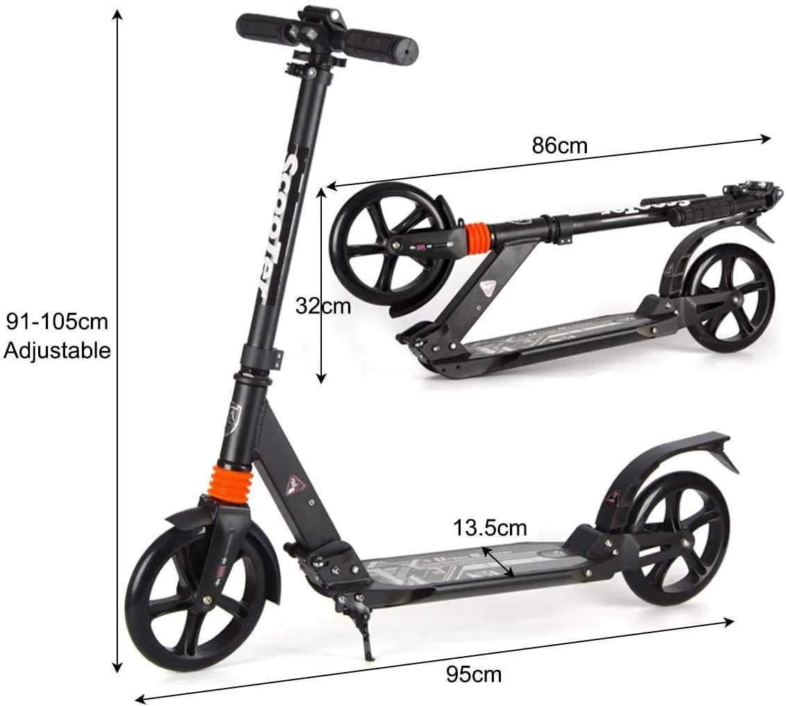 With three adjustable handlebar heights (91–105 cm), this scooter easily adapts to both teens and adults. The quick folding mechanism makes it perfect for urban commuting, school rides, or casual weekend adventures — just fold, carry, and go. Supporting up to 330 lbs (150 kg), this scooter is a reliable companion for daily travel or fitness use.