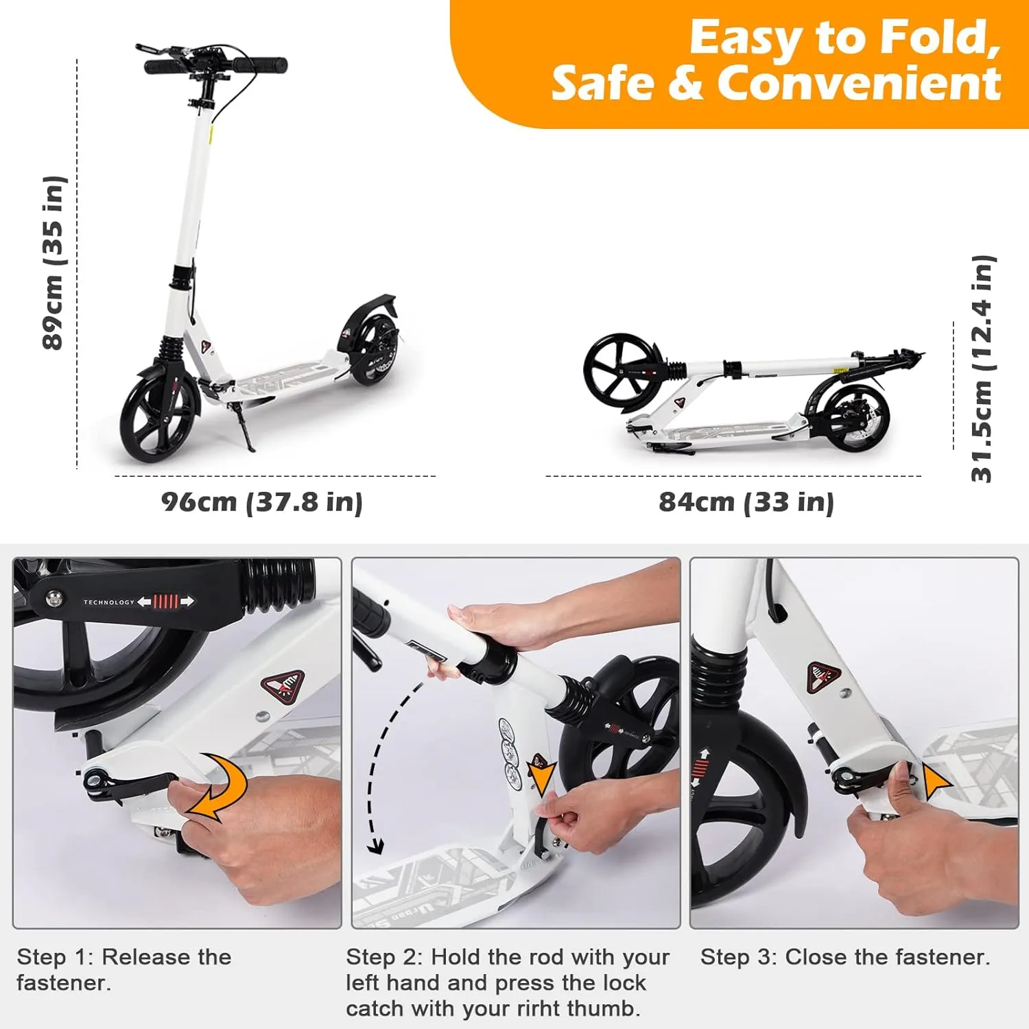Folding Adult Kick Scooter with Large Wheels & Dual Suspension
