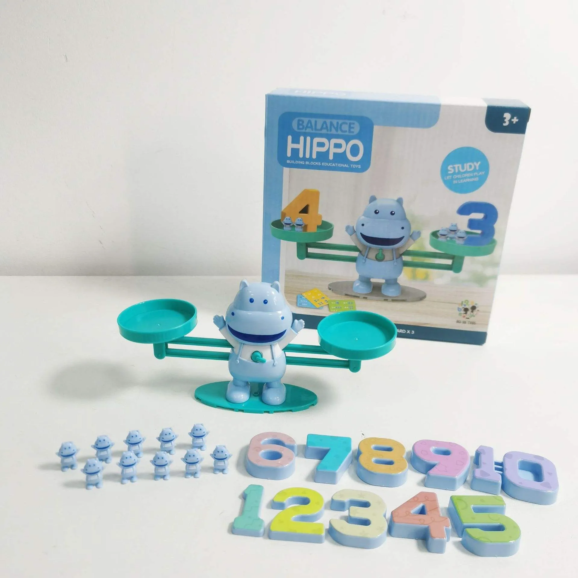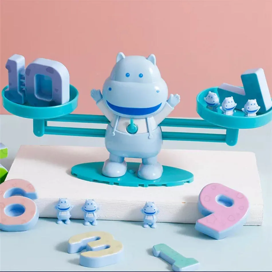 The Hippo Balance Scale Math Toy is a fun and educational tool designed to teach children number recognition, sequencing, counting, and basic math through hands-on play.