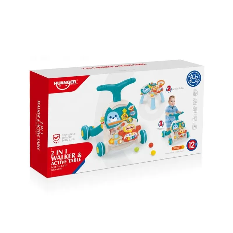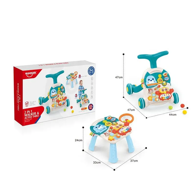 Huanger 2-in-1 Musical Baby Walker – Activity Table with Music & Lights