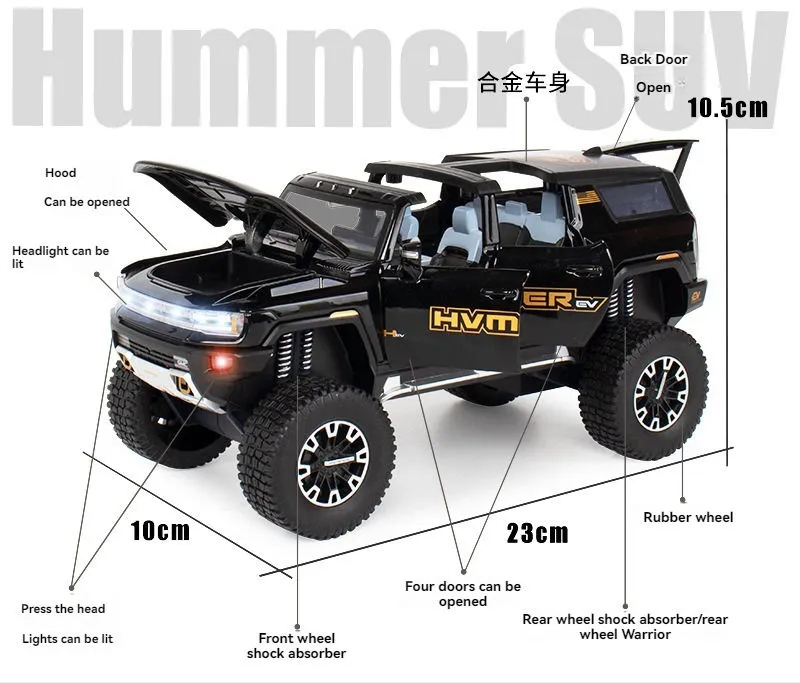 Hummer Diecast Off-Road Metal Toy Car with Lights & Sound