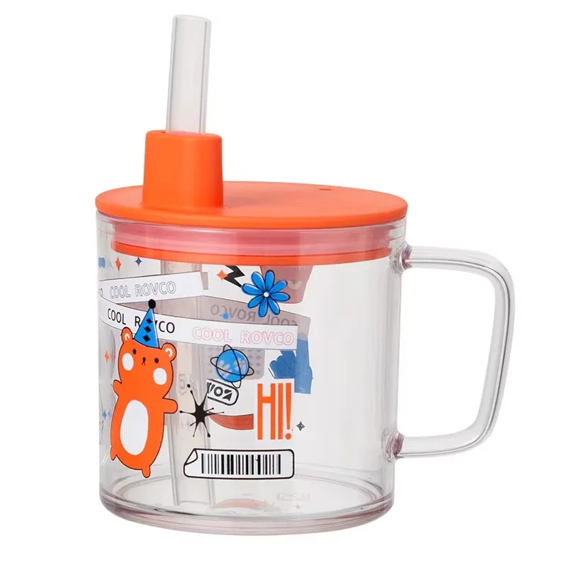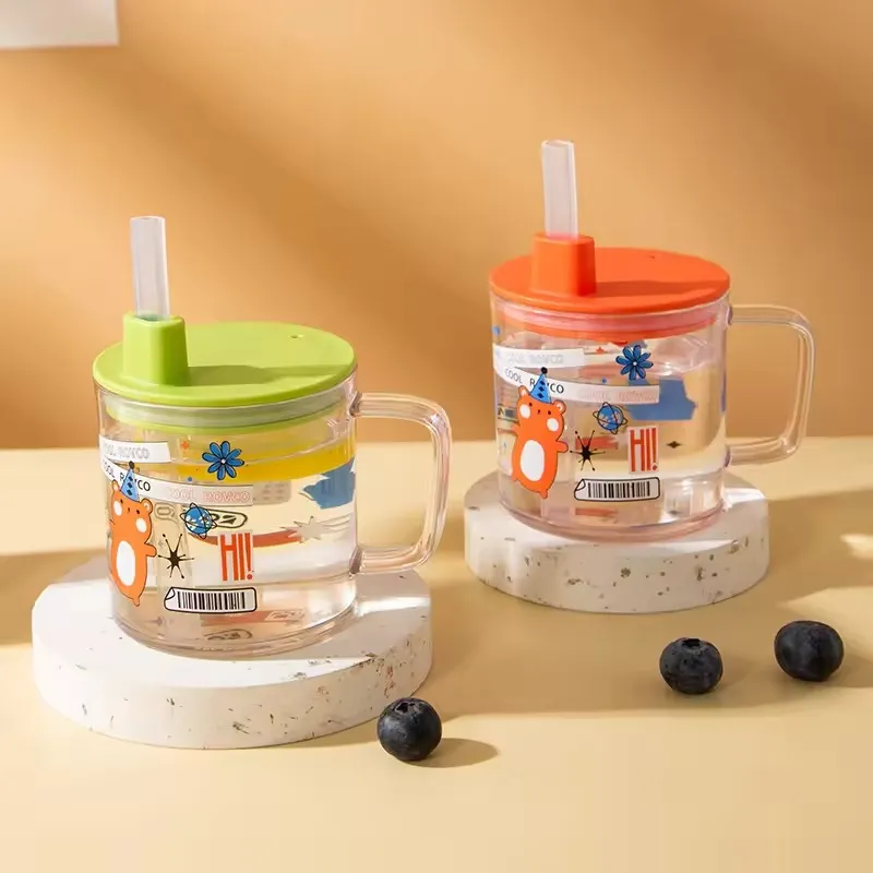 Kids Cartoon 240ml Milk Cup – Tritan Bottle with Lid & Straw