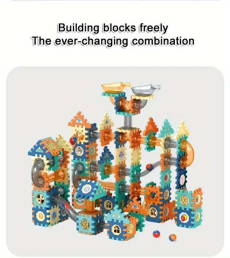 The Pipeline Rolling Ball Building Blocks Set is a creative marble run toy that inspires imagination, problem-solving, and teamwork. Made from safe, non-toxic ABS plastic with smooth edges, it’s perfect for kids aged 3–9 years. A fun and educational gift for birthdays, holidays, and everyday play.