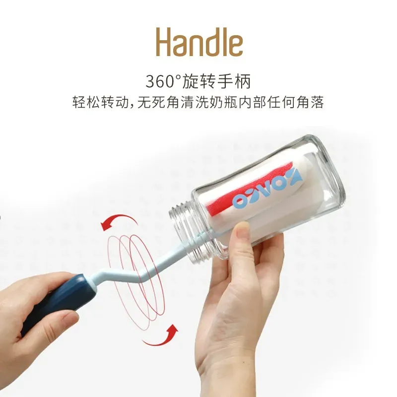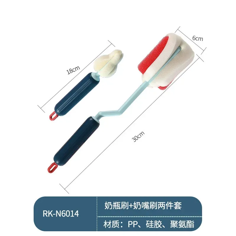Keep bottles spotless with the RK-N6014 sponge brush set—360° rotation, soft sponge, and ergonomic PP handle.