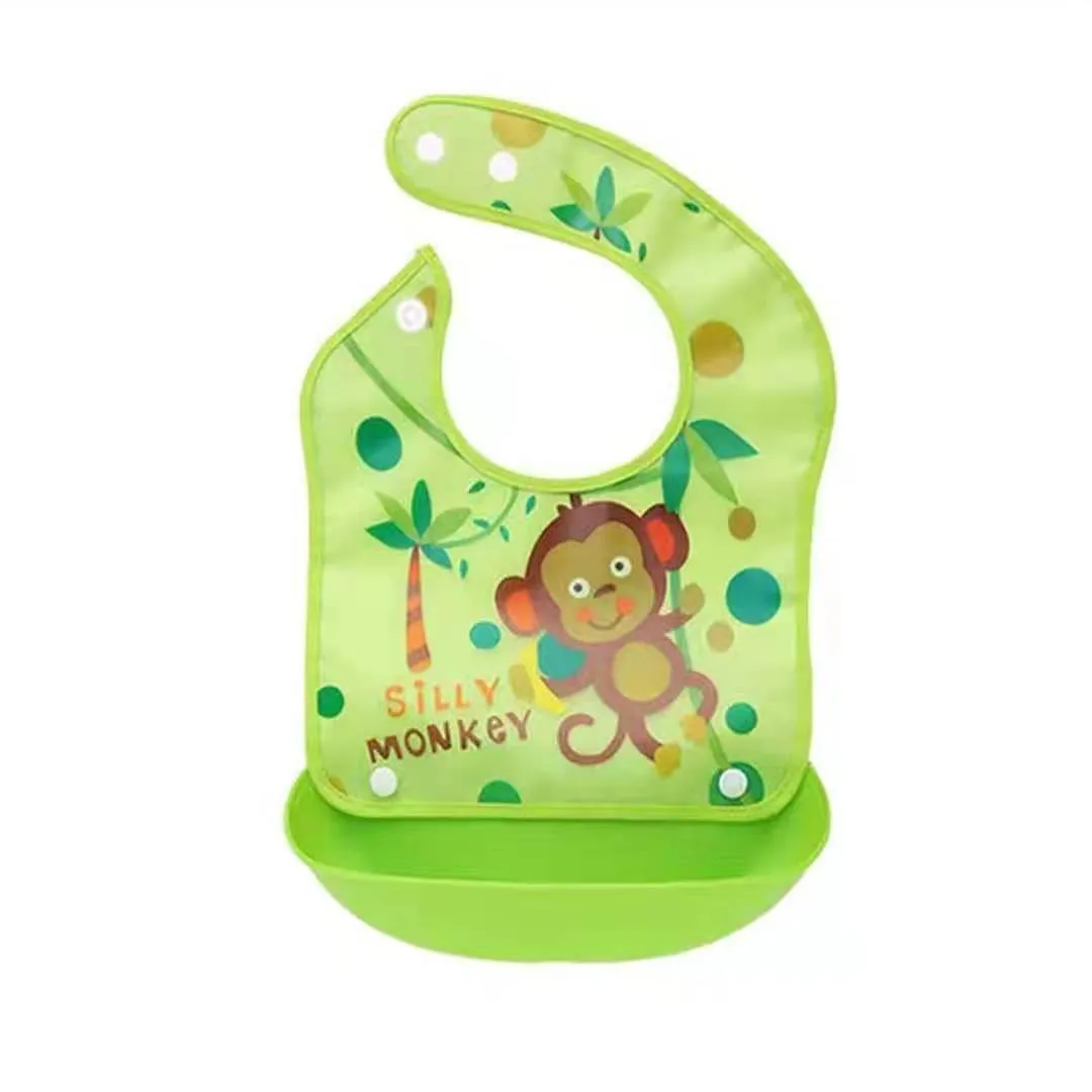 Waterproof Baby Bib with Pocket | Silicone Imitation Feeding Bib
